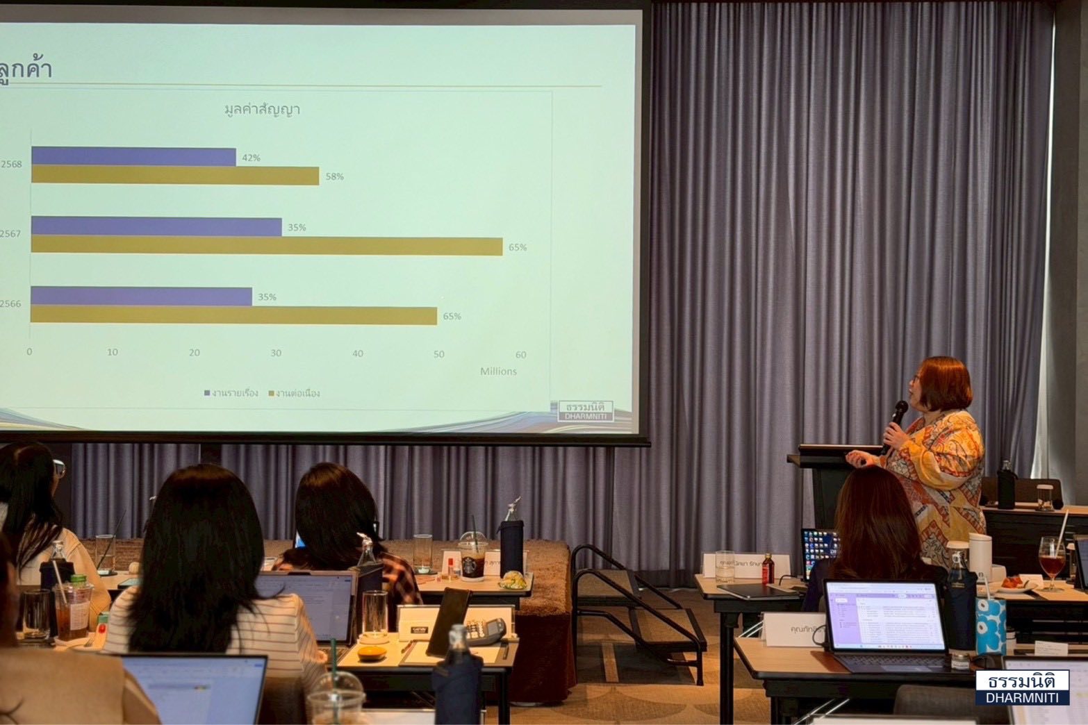 และ คุณดุลยทัศน์ พืชมงคล กรรมการจัดการคนที่ 1 กลุ่มบริษัท ธรรมนิติ จำกัด (มหาชน) มาร่วมกล่าวเปิดการประชุมและให้โอวาทแก่ผู้บริหารและพนักงานของสำนักตรวจสอบภายในธรรมนิติ (DIR)